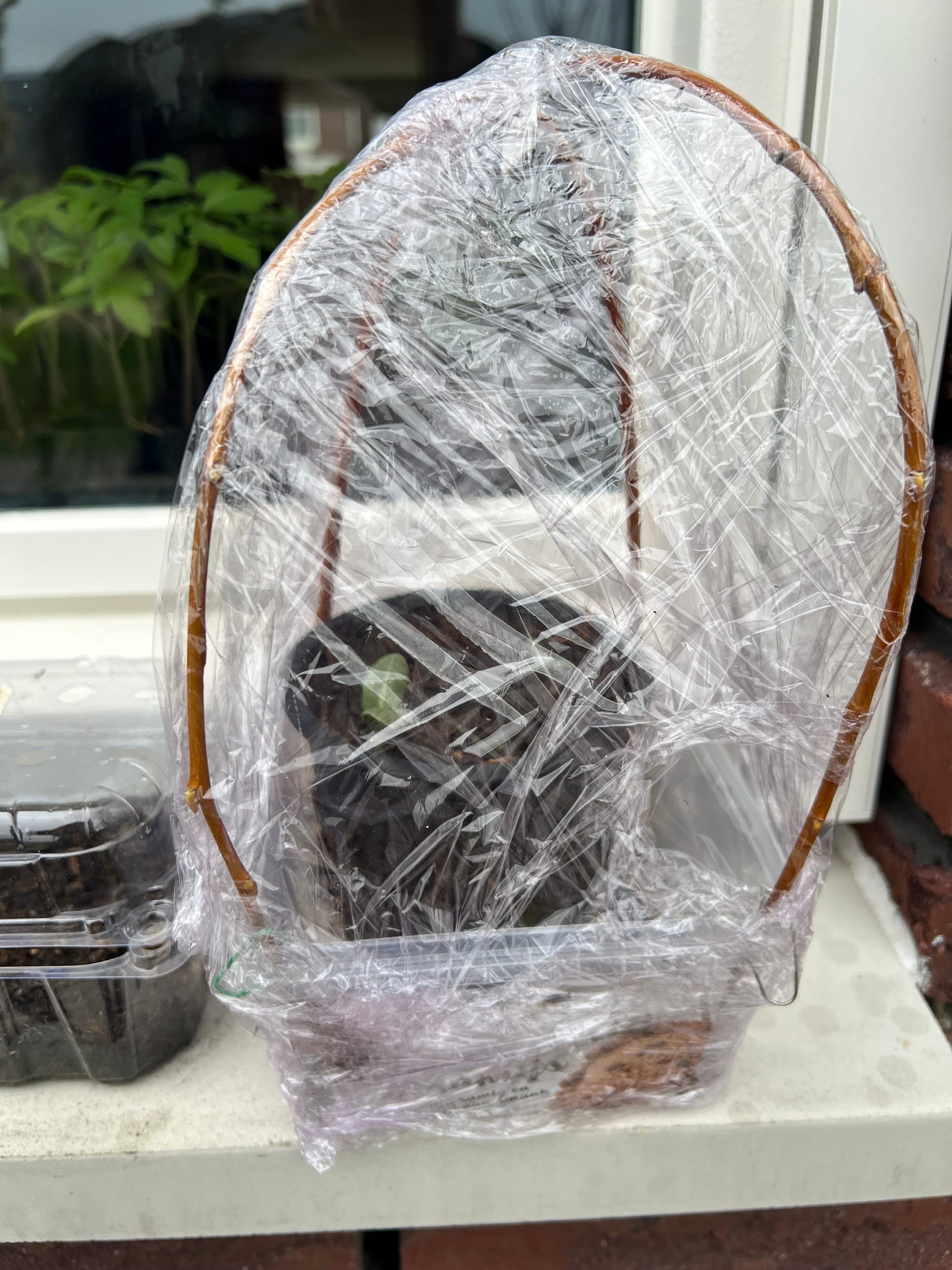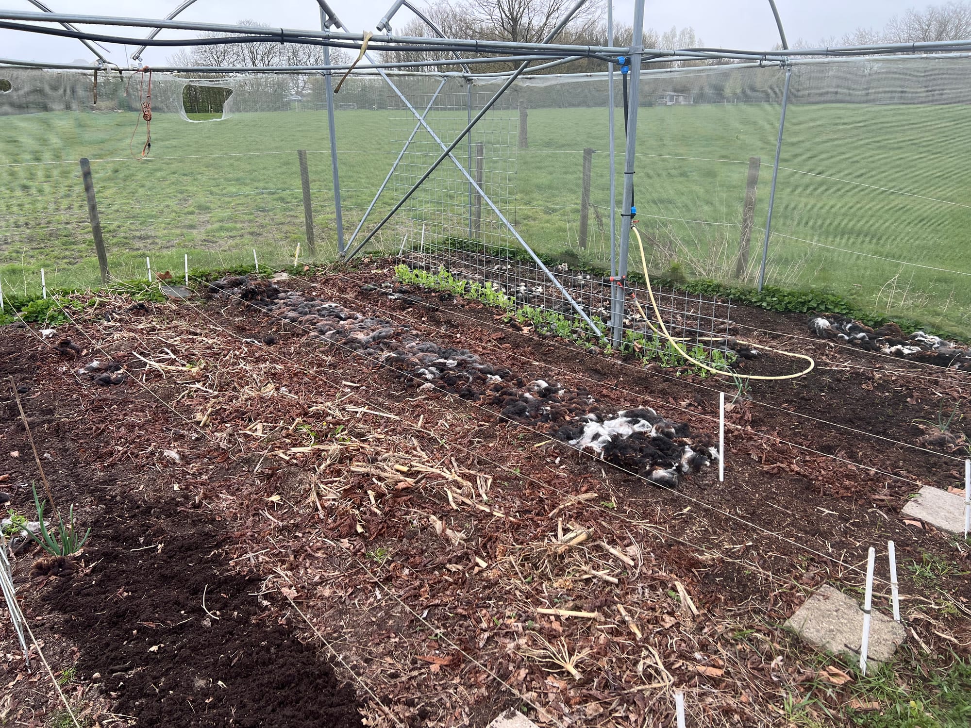 Deze week heb ik fijn veel tijd kunnen vrijmaken om in de tuin bezig te zijn. Ik heb in mijn eigen tuin enkele meerjarigen kunnen planten, zoals mierikswortel, rabarber en lopende ui. Mijn artisjokken wilde ik ook al uitplanten, maar ik herinnerde me op tijd dat ik me had voorgenomen die te vertroetelen tot ze niet anders kunnen dan groot groeien, dus die zitten nog beschermd in een potje, waar ik met wat wilgentakken en een stukje keukenfolie een mini-kasje omheen heb gemaakt.