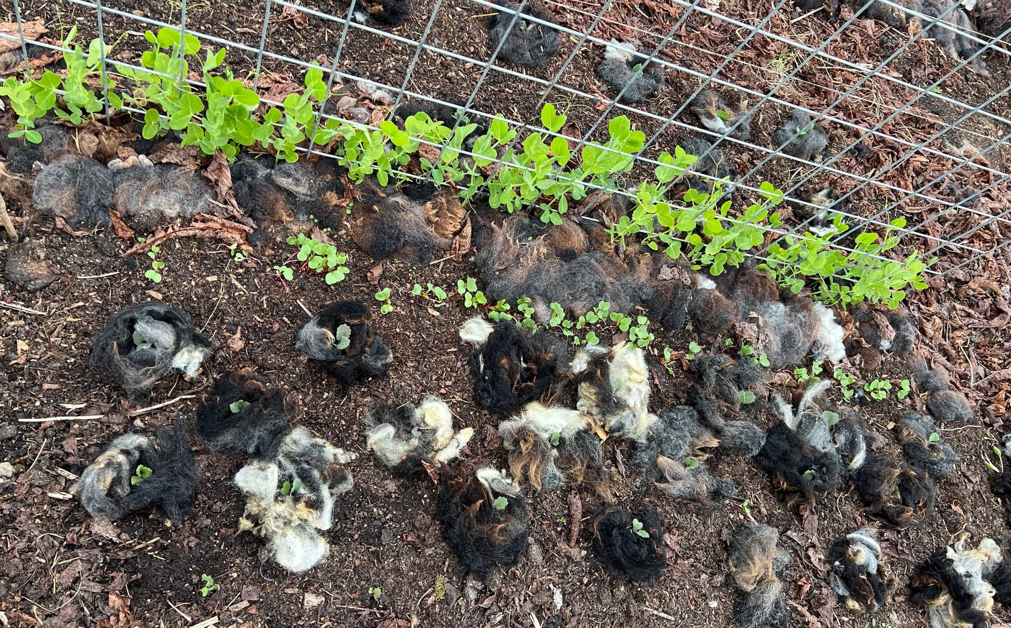 Ik heb al behoorlijk wat naakt- en wijngaardslakken uit mijn tuin gegooid. In de moestuin heb ik de rest van de aardappelen gepoot, de scheutjesbroccoli, spitskool, uien en meiraapjes die in de kweektrays stonden, geplant en nog wat rucola gezaaid. Van de scheutjebroccoli en spitskool wist ik niet meer precies welke welke was. Ik had de naam er bij gezet op een houten ijsstokje, maar ik had niet de goede watervaste stift gebruikt - want die kon ik even niet vinden - en het was niet leesbaar meer wat wat was. Het maakt niet zo uit, ik heb alles gewoon door elkaar heen op verschillende plekken gezet. Een polycultuur is beter bestand tegen plagen en ziet er ook leuker uit. Met een ring van wol om mijn koolplanten helemaal, al zeg ik het zelf.